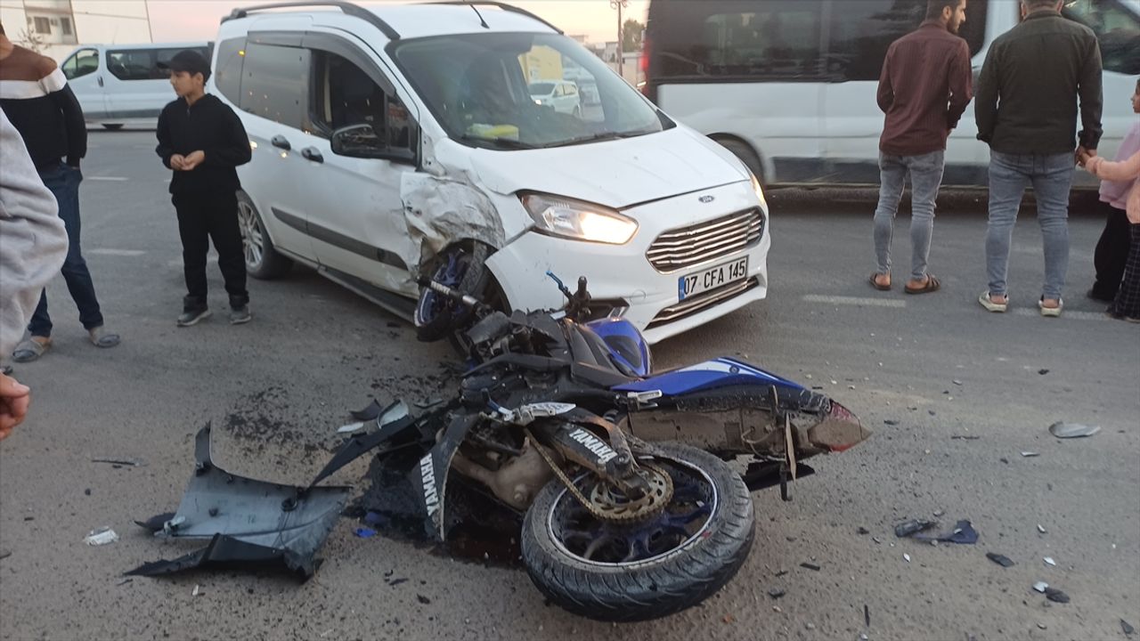 İpekyolu Kavşağı'nda sürücüsünün ismi öğrenilemeyen 07 CFA 145 plakalı hafif ticari araç ve M.Y'nin kullandığı motosiklet çarpıştı.