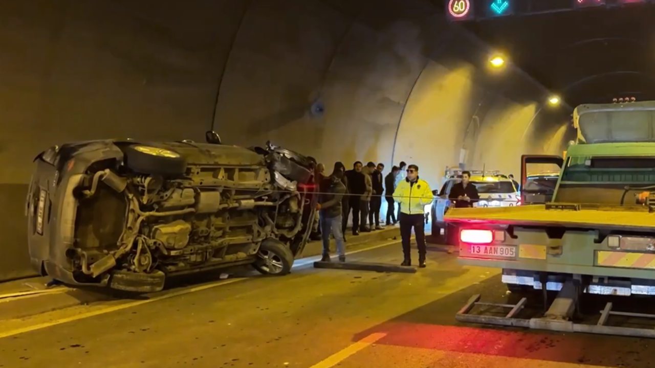 Bitlis 8 Ağustos Tüneli'nde, sürücüleri öğrenilemeyen 26 AKR 113 plakalı otomobil, 12 AAG 700 plakalı hafif ticari araçla çarpışarak takla attı.
