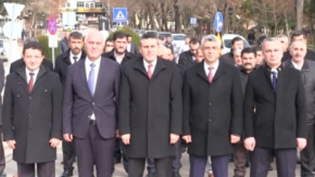 Elbistan ilçesinde, Cumhuriyet Meydanı'nda düzenlenen törende İlçe Milli Eğitim Müdürü Kürşat Bayazıt Atatürk Anıtı'na çelenk sundu.
