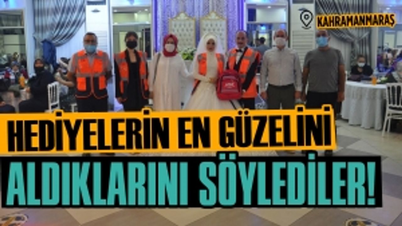 Kahramanmaraş’ta AFAD gönüllüsü gelin ve damadın takısı ‘afet ve acil durum çantası’ oldu.