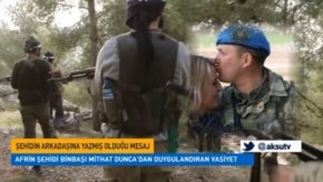 Türkiye Afrin Şehidi Binbaşı Mithat Dunca'dan Duygulandıran Vasiyet 20.03.2018 - 20:28 20.03.2018 - 20:28 Loading... Abone Ol Afrin Şehidi Binbaşı Mithat Dunca'NIN Vasiyeti Duygulandırıldı. Gelişmelerden haberdar olmak istiyor musunuz? Google News’te Aksu Tv Haber sitemize abone olun. Abone Ol