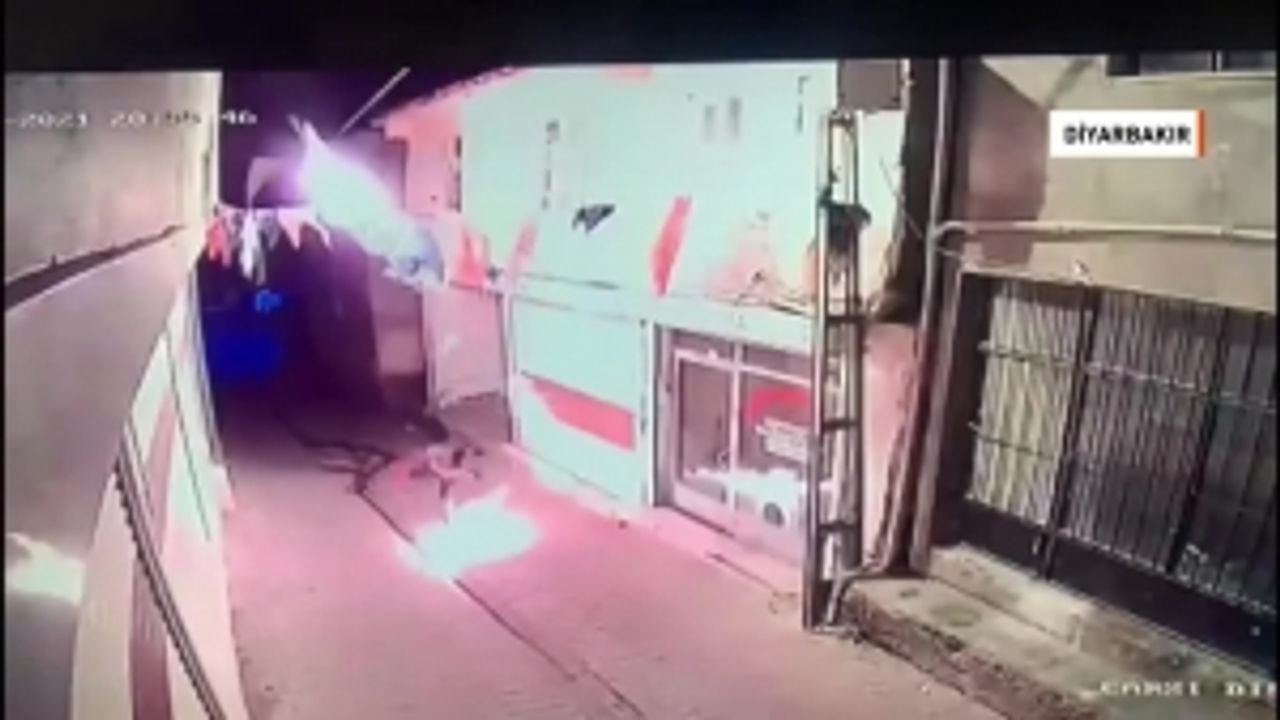 Görüntüler Diyarbakır’ın hani ilçesinde kayıt edildi. Kimliği belirsiz kişiler ak parti ilçe teşkilatı binasını hedef aldı Zanlılardan biri gözcülük yaparken diğeri elindeki Molotof kokteylini ateşleyip binaya attı Saldırı sırasında içeride...