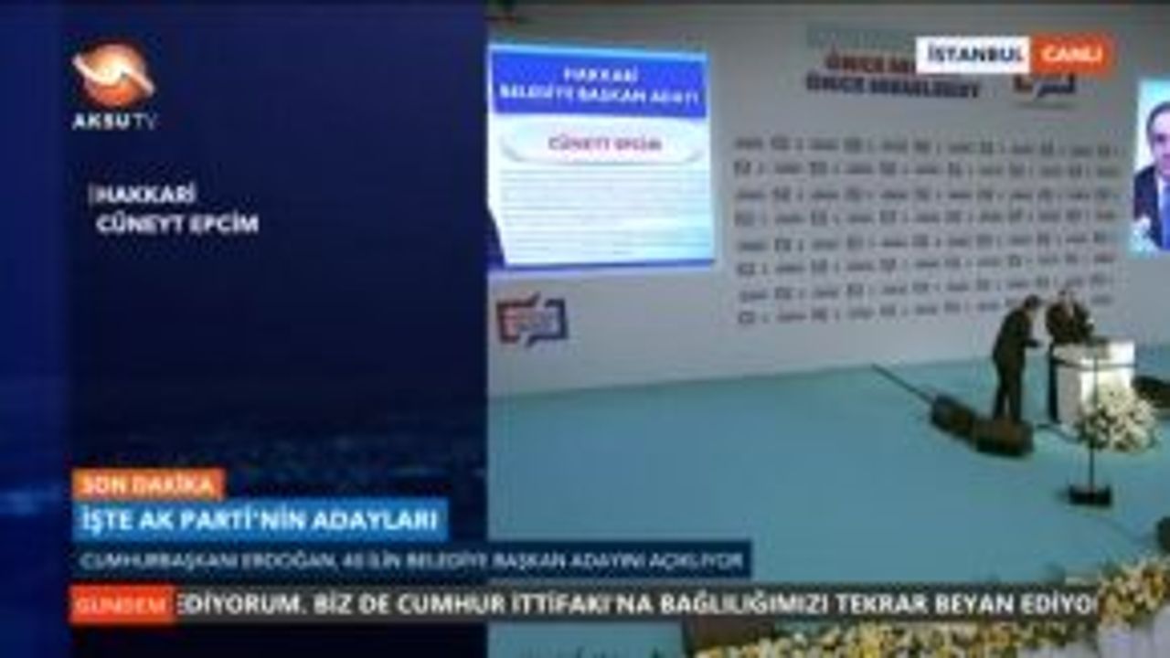 Başkan Recep Tayyip Erdoğan, AK Parti'nin 31 Mart yerel seçimlerinde göstereceği adaylardan ilk grubu büyük bir törenle kamuoyuna duyurdu.
