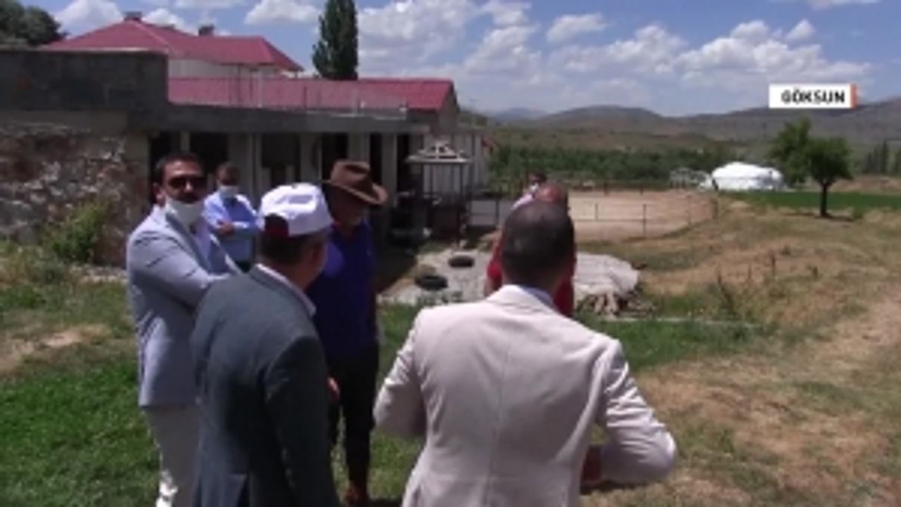 Aksu TV Genel Müdürü Cüneyt Beyit, Göksun Belediye Başkanı Hüseyin Coşkun Aydın, Genel Müdür Yardımcısı Erol Öner ve Başkonuş Yaylası Yönetim Kurulu Başkanı Serhan Erdoğanyılmaz Göksun’da yarış atı yetiştirilen Balkaroğlu...