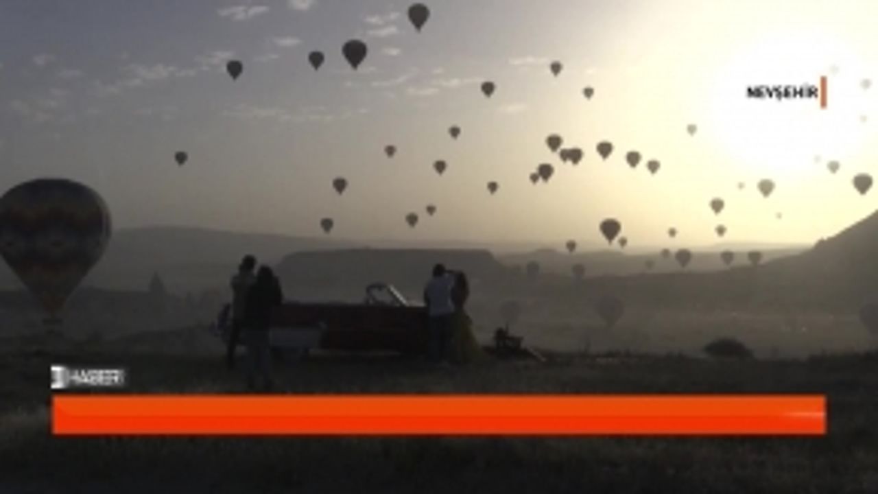 Kapadokya'da sıcak hava balon turuna katılan çok sayıda yerli ve yabancı turist, bölgenin güzelliklerini havadan izleyerek bayramı karşıladı.