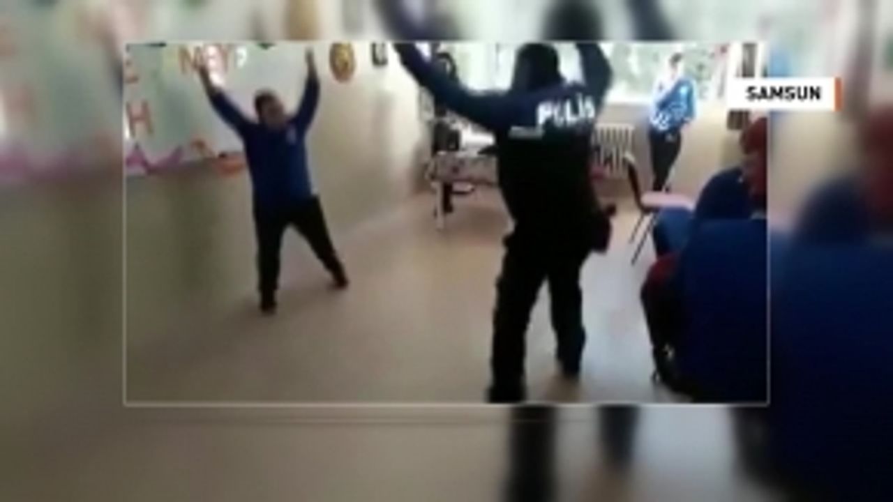 Samsun Emniyet Müdürlüğü Toplum Destekli Polislik Şube Müdürlüğünde görevli polis memurunun ziyaret için gittiği okulda down sendromlu öğrenciyle oynadığı zeybek, cep telefonu kamerasıyla görüntülendi.