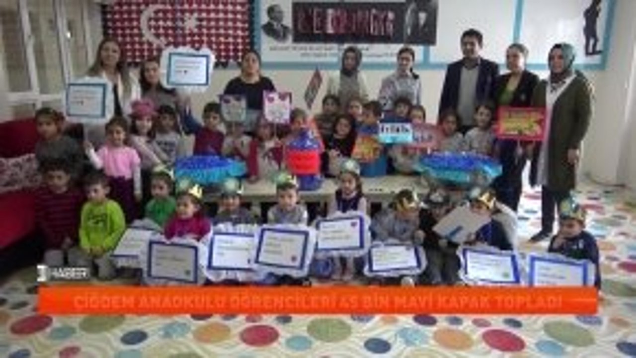 Çiğdem Anaokulu Öğrencileri ve öğretmenleri tarafından toplanan 45 binin üzerindeki mavi...