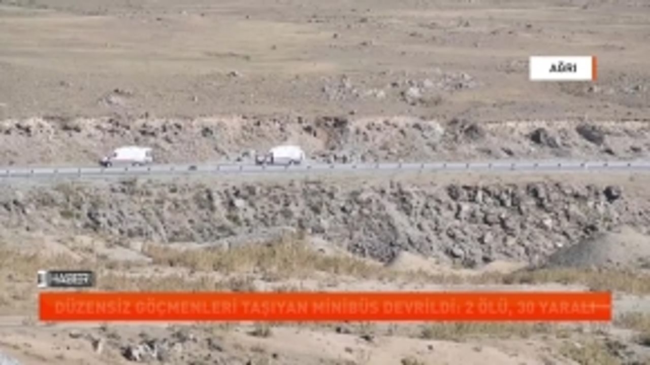 Alınan bilgiye göre, düzensiz göçmenleri taşıyan sürücüsü belirlenemeyen 76 AAE 157 plakalı minibüs, Ağrı-Van kara yolu Tendürek Dağı Somkaya köyü mevkisinde virajı alamayarak yoldan çıktı. Şarampole düşerek devrilen minibüsteki 32...
