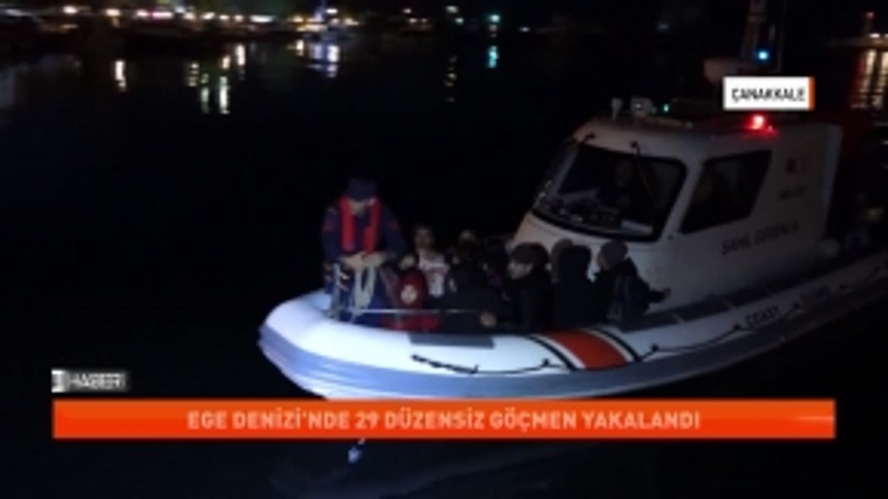 Çanakkale'nin Ayvacık ilçesi açıklarında, yasa dışı yollardan Yunanistan'ın Midilli Adası'na doğru giden lastik bottaki 29 düzensiz göçmen yakalandı.