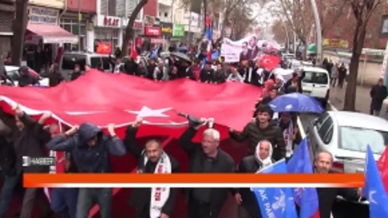 Elbistan’da Cumhur İttifakı rüzgârı esti. Cumhur İttifakı’nın Elbistan ilçesinde “ zafer yürüyüşü” adı altında düzenlediği programda şiddetli yağmura rağmen, onbinlerce kişi Recep Tayyip Erdoğan millet bahçesinden ilçe merkezine kadar yürüdü.