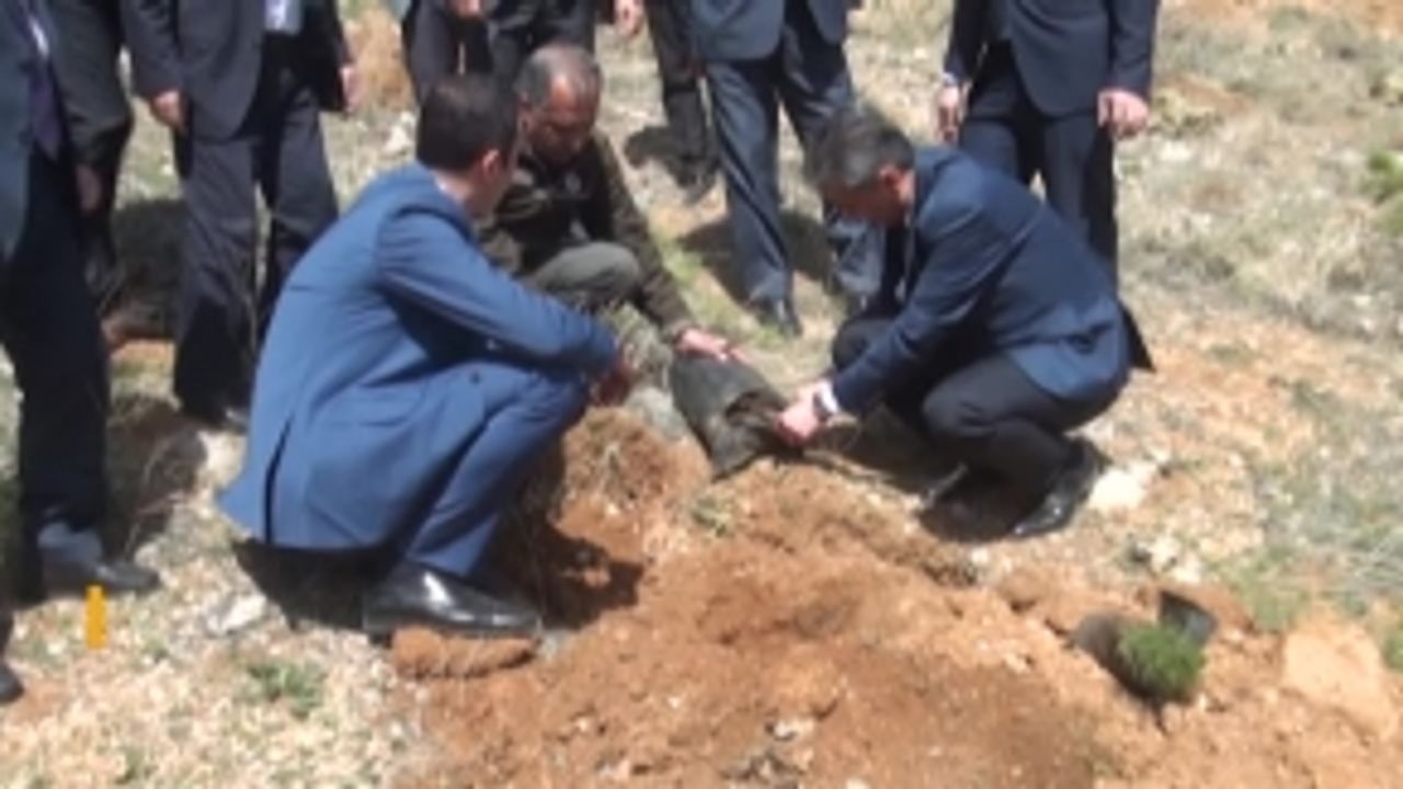 Elbistan’da yüzlerce çam fidanını toprakla buluşturdu