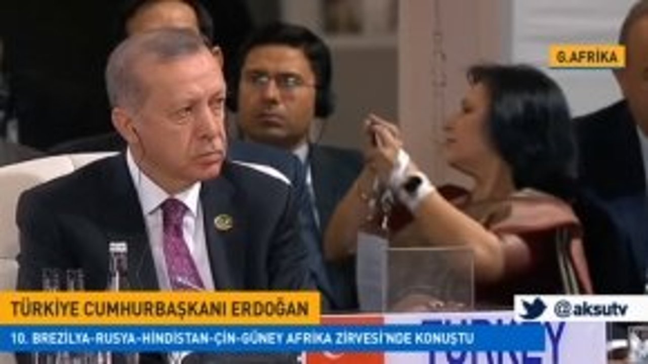 Türkiye Cumhurbaşkanı Recep Tayyip Erdoğan Güney Afrika'da, 10. Brezilya-Rusya-Hindistan-Çin-Güney Afrika (BRICS) Zirvesi'nde konuştu.