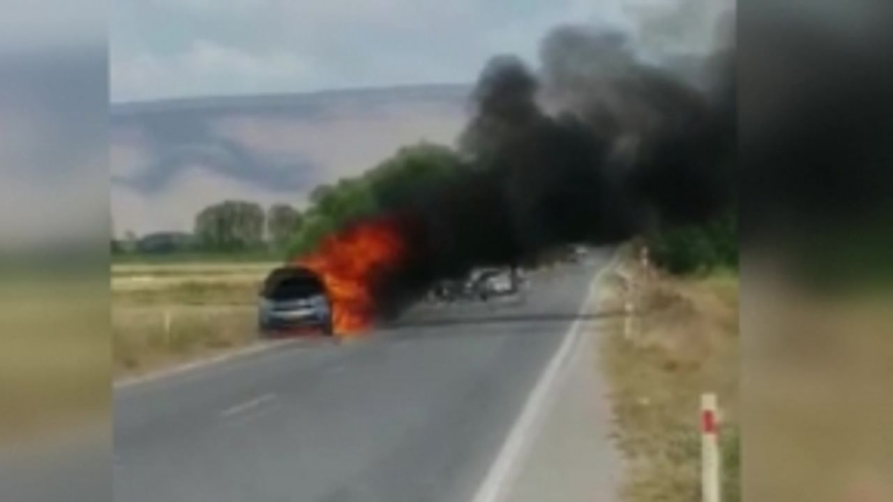 Afşin'de, seyir halinde arızalan ve motor kısmından alev alan otomobil tamamen yandı.