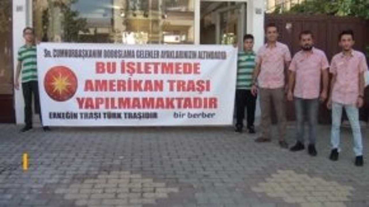 Kahramanmaraş'ta bir berber ABD Başkanı Donald Trump'ın Türkiye'ye yönelik açıklama ve yaptırımlarına tepki göstermek amacıyla iş yerinde "Amerikan tıraşı" yapmadığı belirten pankart astı.
