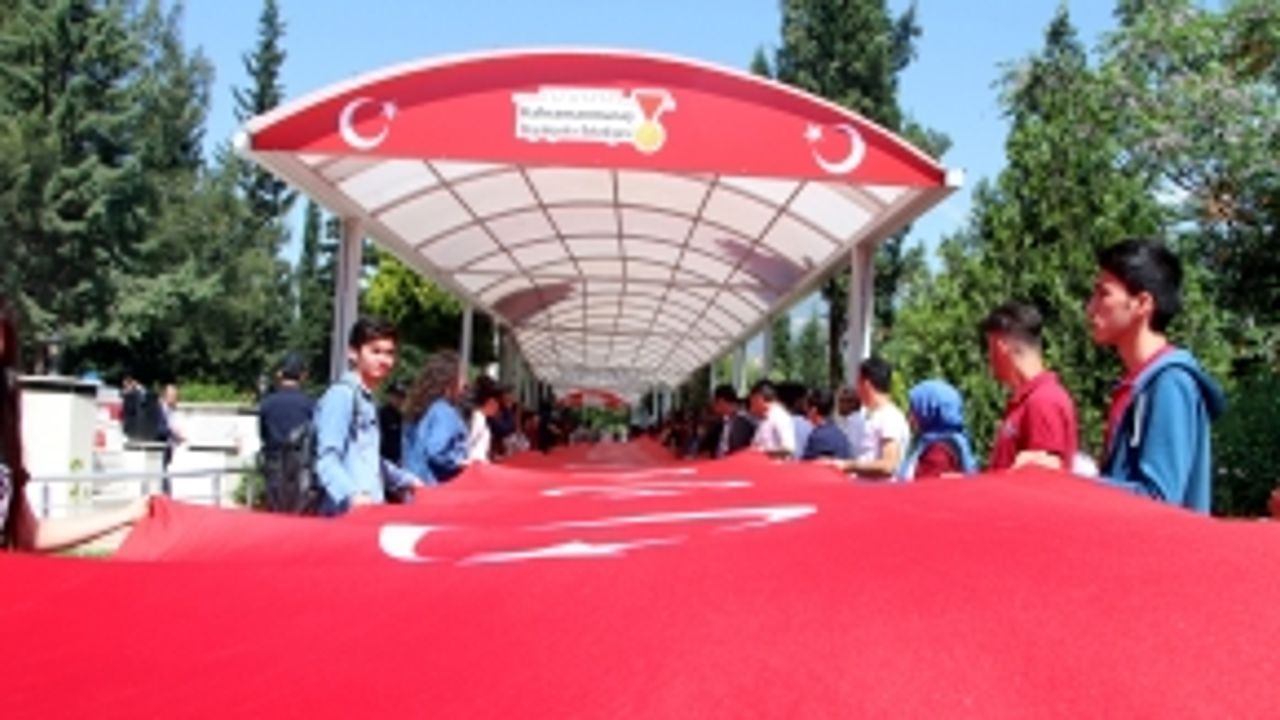 Gençlik Merkezi Önünde Toplanan Öğrenciler, 100 Metrelik Türk Bayrağını Açarak Şeyh Adil Mezarlığı'ndaki Şehitliğe Kadar Yürüdü.