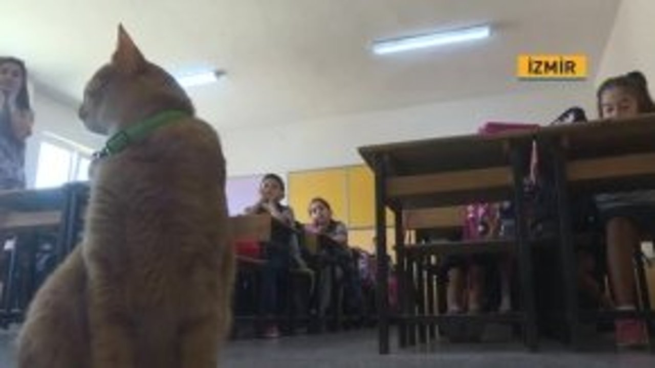 İzmir'de ilkokul öğrencilerinin sınıfta baktığı "Tombi" adlı kedi, yaz tatilinin ardından sınıftaki yerini aldı. Öğrenciler özledikleri kediye kavuşmanın sevinci yaşadı.