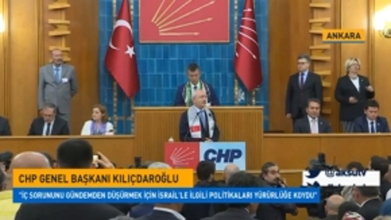 CHP Lideri Kılıçdaroğlu grup toplantısını yaparken kürsüye Filistin atkısıyla çıktı. Gazze'deki katliam üzerinden ABD Başkanı Trump'ı eleştiren Kılıçdaroğlu, ''İç sorununu gündemden düşürmek için İsrail'le ilgili politikaları yürürlüğe koydu" dedi.