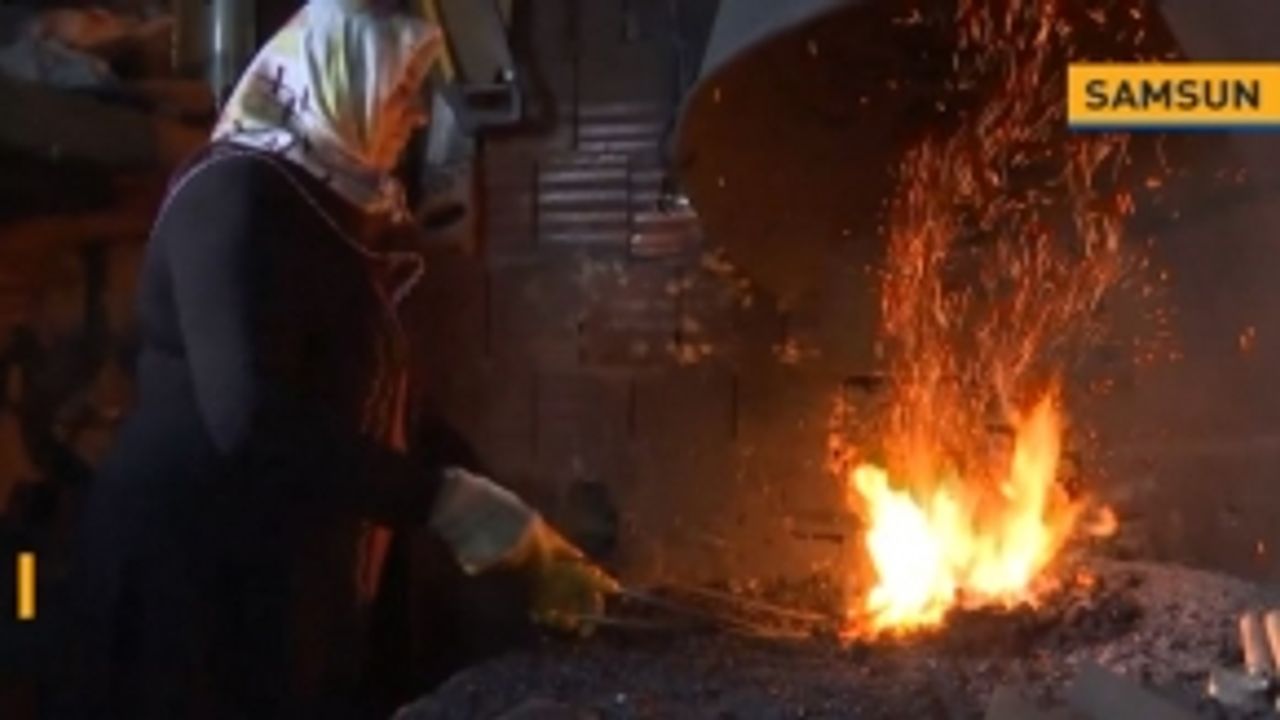 Samsun'un Alaçam ilçesinde 6 çocuk annesi Bagiye Turan, çocukluğunda babasından öğrendiği sıcak demir ustalığı sayesinde evinin geçimine katkı sunuyor