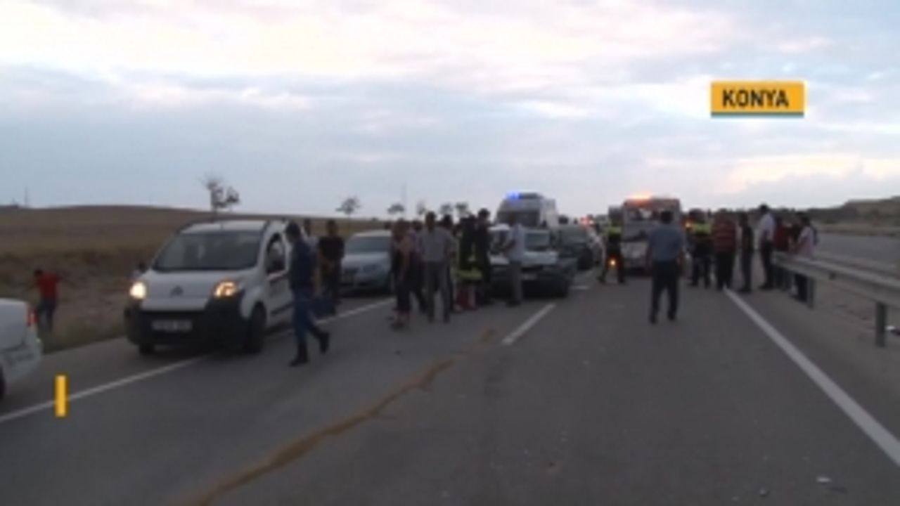 Kum fırtınası nedeniyle Konya-Ankara karayolunda meydana gelen iki farklı zincirleme trafik kazasında toplam 20 araç çarpıştı, 17 kişi yaralandı