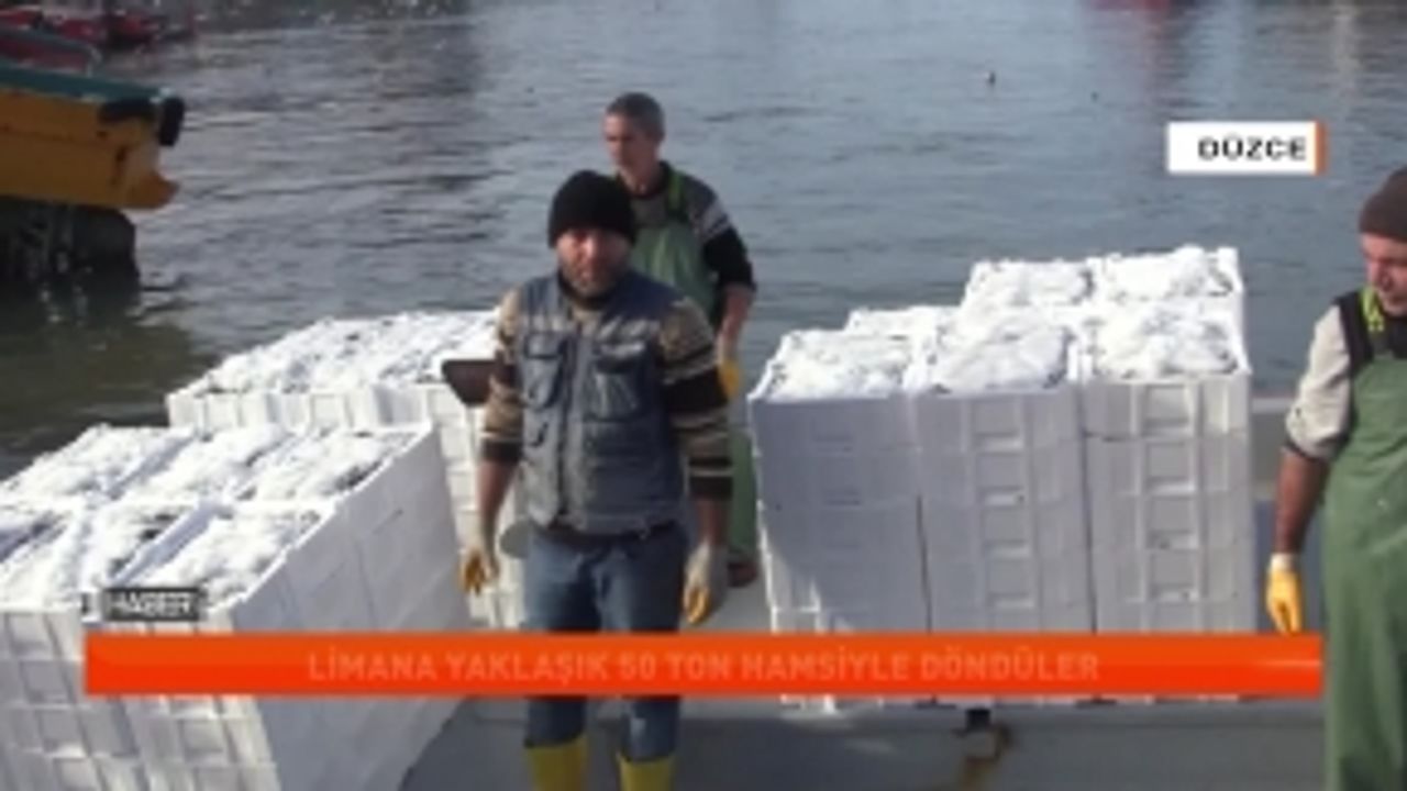 Batı Karadeniz'in en önemli limanlarından Akçakoca'da denize açılan balıkçılar, yaklaşık 50 ton hamsiyle limana döndü.