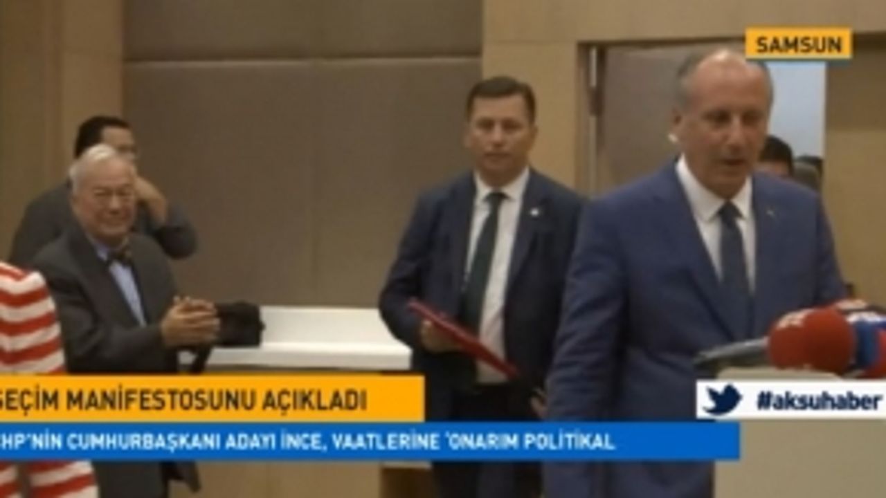 Samsun'da Seçim Manifestosunu Açıklayan Chp'nin Cumhurbaşkanı Adayı İnce, ''Memleketin Yaralarını Sarmak Hedefiyle Cumhuriyetimizin Örselenen Değerlerini Yeniden Tesis Etmeyi Amaçlayan Onarım Politikalarımız 5 Ana Sütuna Dayalı Olacaktır. Bunlar Hukuk Sütunu Demokrasi...