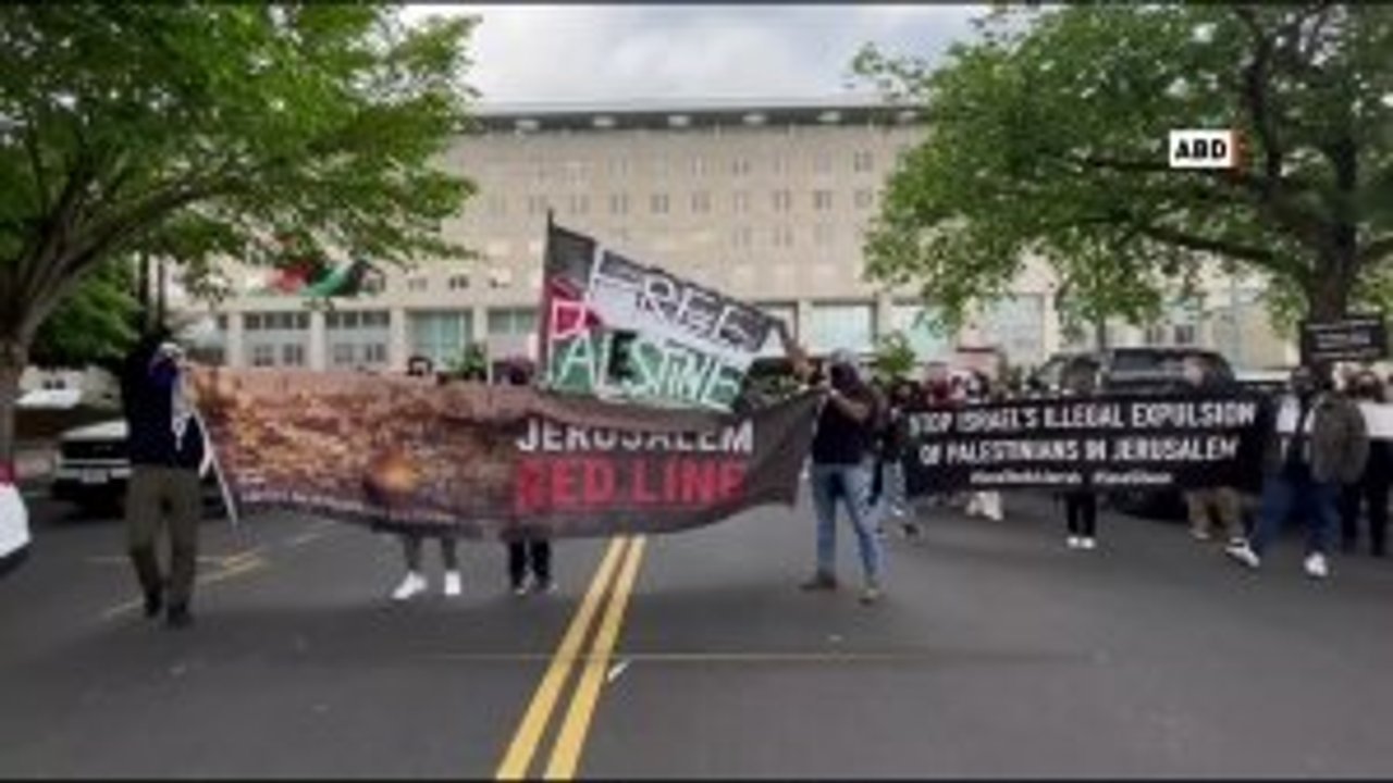 İsrail'in Gazze ve Mescid-i Aksa'ya yönelik saldırıları, ABD'nin New York şehrinde bulunan İsrail konsolosluğu binası önünde protesto edildi.