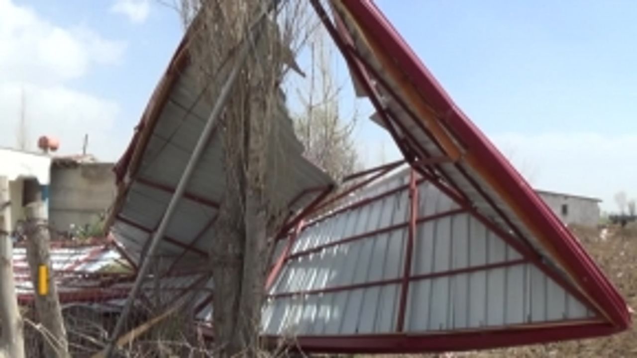 Elbistan İlçesinde Etkili Olan Şiddetli Rüzgar, Bir Okula Ait Çatıyı Evin Bahçesine Uçurarak Hasara Yol Açtı.
