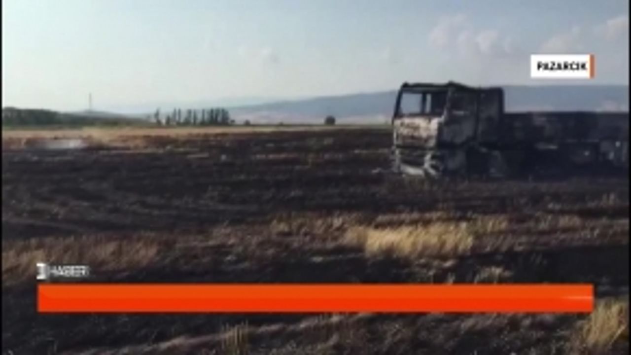 Sigara izmariti tarlayı ve tırı yaktı