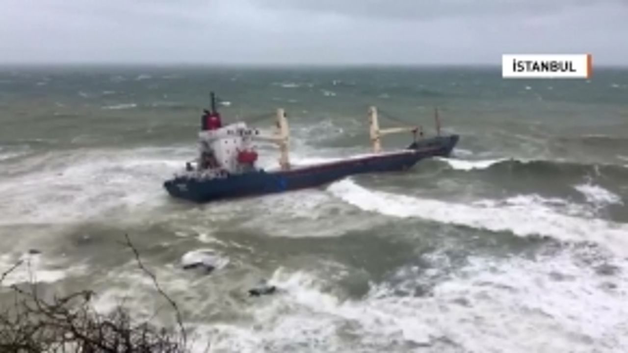 İstanbul Şile'de şiddetli fırtına nedeniyle bir kuru yük gemisi karaya oturdu.