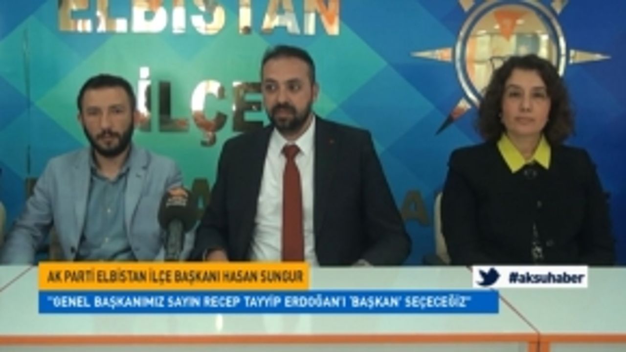 Ak Parti Elbistan İlçe Başkanı Hasan Sungur Elbistan teşkilatının seçimlere hazır olduğunu belirterek, Cumhurbaşkanımız, Genel Başkanımız Sayın Recep Tayyip Erdoğan’ı ‘Başkan’ seçeceğiz dedi.