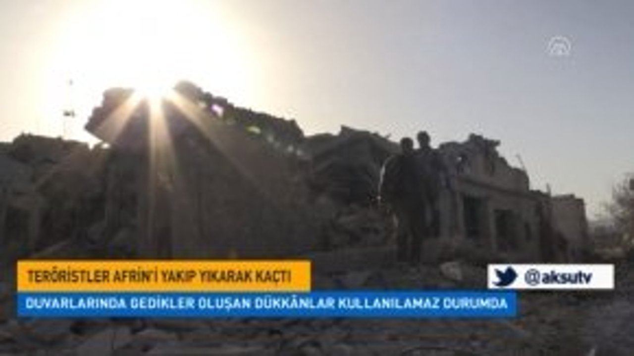 Türkiye'nin Zeytin Dalı Harekâtı’nda yapıların hasar almaması için gösterdiği hassasiyete karşın YPG/PKK büyük tahribata yol açtı. Teröristlerin, bina ve dükkânlar arasında geçiş sağlamak için duvarlara büyük delikler açarak...