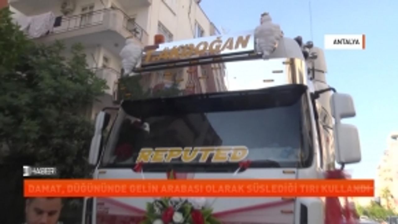 Antalya'da Kepez Belediyesinin Nostaljik Araçlar Müze Müdürü olarak görev yapan damat, düğününde tırı gelin arabası yaptı.