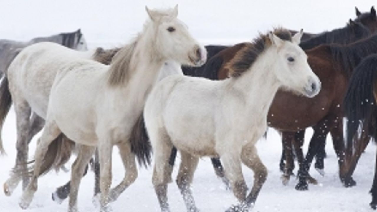 Erciyes Dağı'nın eteklerinde yaşayan ve kış mevsiminin gelmesiyle ayrı bir görsel güzelliğe bürünen yılkı atları, foto safari turları kapsamında yerli ve yabancı turistlerden büyük ilgi görüyor.