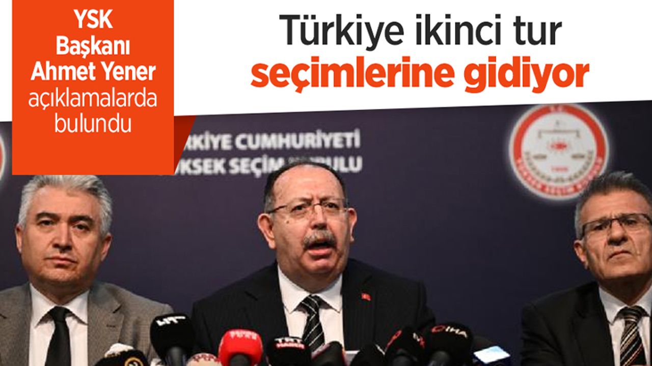 Yüksek Seçim Kurulu Başkanı Ahmet Yener, Cumhurbaşkanlığı seçimlerinde yurt dışı sandıklarının da açılmasının ardından seçimin ikinci tura kaldığını duyurdu.