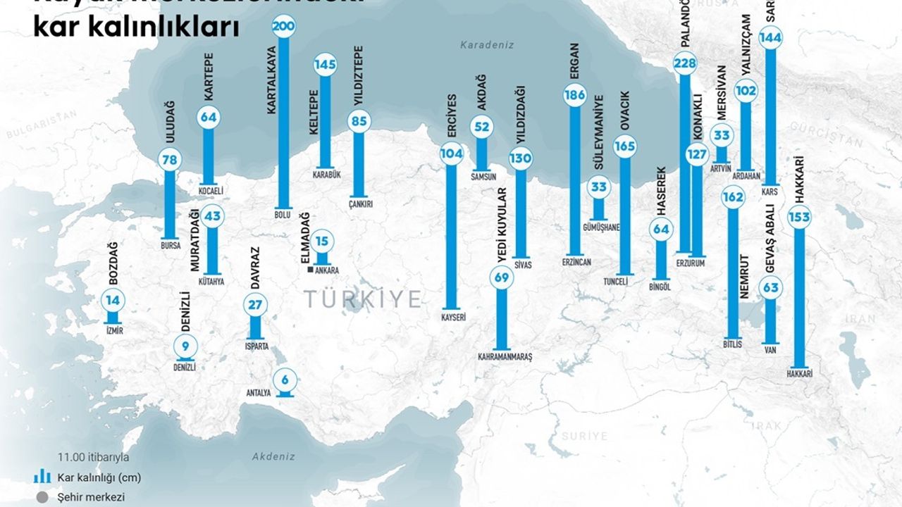 Uludağ, Palandöken, Erciyes, Kartalkaya, Sarıkamış, Davraz, Yıldız Dağı ve Yedikuyular gibi birçok kayak merkezinde kar kalınlıkları kayak yapmaya elverişli seviyelere çıktı.