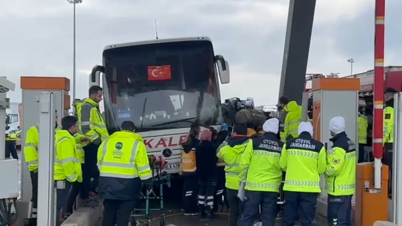 Otoyolun Kınalı Gişeleri'nde, bir yolcu otobüsü geçiş sırasında otomobile çarptı.